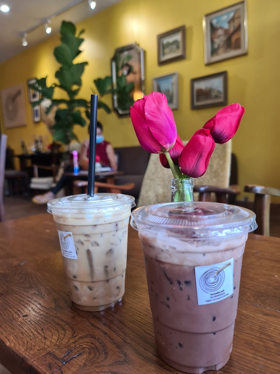 As you step inside, you are greeted by the delightful aroma of freshly brewed coffee mingling with the sweet scent of pastries. The ambiance is tranquil, providing a perfect escape from the hustle and bustle of the city, where you can relax in comfortably air-conditioned surroundings. The spacious layout allows for a social atmosphere or a quiet corner to enjoy some alone time with a book or your thoughts.